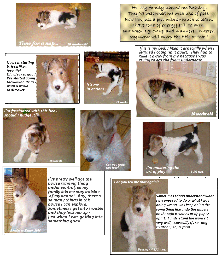 HELLO! I was born on November 23, 2003 late at night in Norfolk, MA. I was one of a litter of five. At nine weeks these people came to take me away but I wasn't afraid one bit. Somehow I felt very safe with these two ladies. And when we finally got to the house (I soon discovered that this would be my home) I was thrilled to just walk and sniff around. I knew there must have been someone like me before because I could smell it. Really I didn't miss my siblings very much; I kind of liked this new place. And then I discovered I could lay in their laps, and they fed me and played with me- what a life!!! I didn't like having to go into that cold air (remember it was winter) so I did my duties very quickly and they'd bring me right back inside. And all the toys they had - I later learned many of them were inherited by me from Winnie. I learned to look forward to shopping bags because there'd always be something for me. Oh yes, I like this place - gee I hope I get to stay. |
