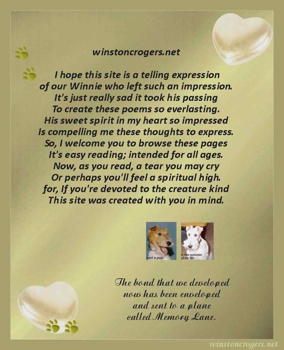 Pet Loss Poetry and Sympathy Cards inspired by Winnie Rogers Wire Hair Fox Terriers Winnie, Beasley & Remy Rogers